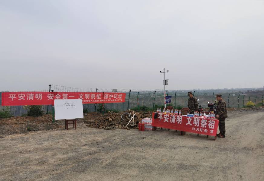 自2021年10月正式接管礦山安全管理以來,興天礦業(yè)將礦山安全作為重中之重。為老礦坑重新安裝護欄實現(xiàn)礦坑全封閉管理,每天至少安排6人次開展礦山安全巡查;架設(shè)6個探頭實現(xiàn)礦區(qū)24小時監(jiān)控?zé)o死角,嚴格落實夜間和節(jié)假日應(yīng)急值守工作;在礦區(qū)危險區(qū)域拉設(shè)警戒線、安裝警示牌;清明節(jié)期間在礦區(qū)設(shè)立文明祭掃宣傳臺,引導(dǎo)群眾文明安全祭掃,對接近礦坑邊緣的群眾進行勸離,全方位保障群眾人身安全,切實預(yù)防事故發(fā)生。