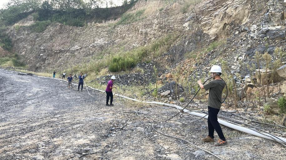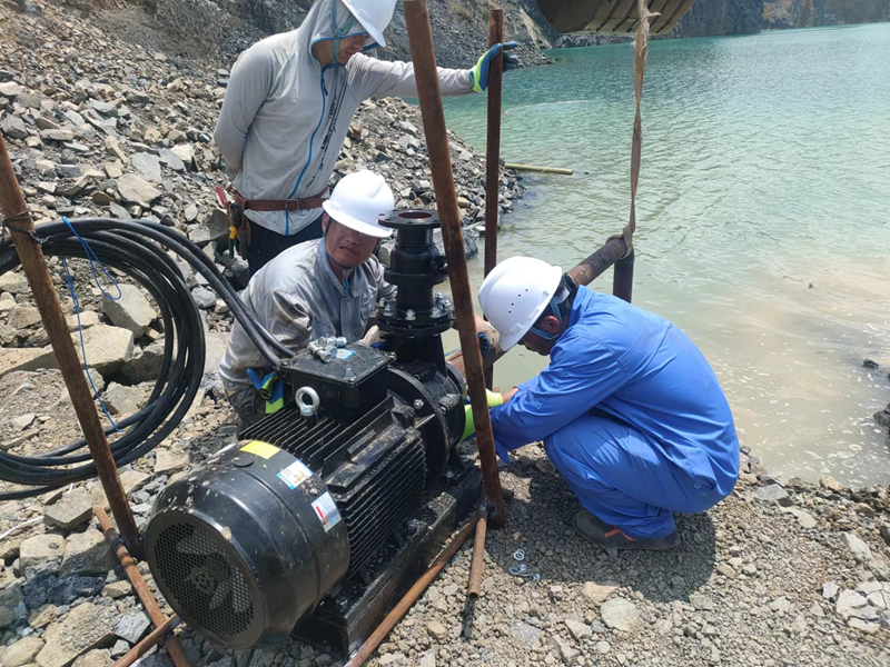 抗旱方案有了,可是要想把水從70米深的礦坑內(nèi)抽到地面,不但需要揚(yáng)程特別高的水泵,還需要高規(guī)格長(zhǎng)距離的水管和電纜,還有很多配套零部件要采購(gòu)。旱情就是命令,抗旱就是責(zé)任,興天礦業(yè)副總經(jīng)理趙崗牽頭落實(shí)抗旱物資采購(gòu),親自指揮設(shè)備調(diào)運(yùn)安裝,帶領(lǐng)公司抗旱突擊隊(duì)和社區(qū)干部深入礦坑,一起研究水泵需要多大功率安裝在什么地方、水管需要多粗從哪里下放、電纜需要多長(zhǎng)從哪里接電等問(wèn)題。方案制定好了,老百姓的水稻不能等,挖掘機(jī)第一時(shí)間進(jìn)場(chǎng)整理場(chǎng)地,興天礦業(yè)和社區(qū)準(zhǔn)備的水泵、水管電纜等也迅速到位,抗旱突擊隊(duì)與社區(qū)干部群眾一起與時(shí)間賽跑,從早到晚緊張施工,一心想著的就是早點(diǎn)把水抽上去,盡量把旱情影響降到最低。