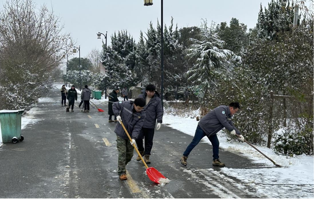 以“雪”為令,齊心協(xié)力清掃家園。19日上午8點(diǎn),公司組織志愿者清掃辦公區(qū)積雪,志愿者們冒著颼颼襲來(lái)的寒風(fēng),紛紛拿起鐵鍬、掃帚等工具,相互配合、齊心協(xié)力,干的熱火朝天,不久,辦公區(qū)域積雪全部鏟除,保障了辦公區(qū)職工的出行安全。